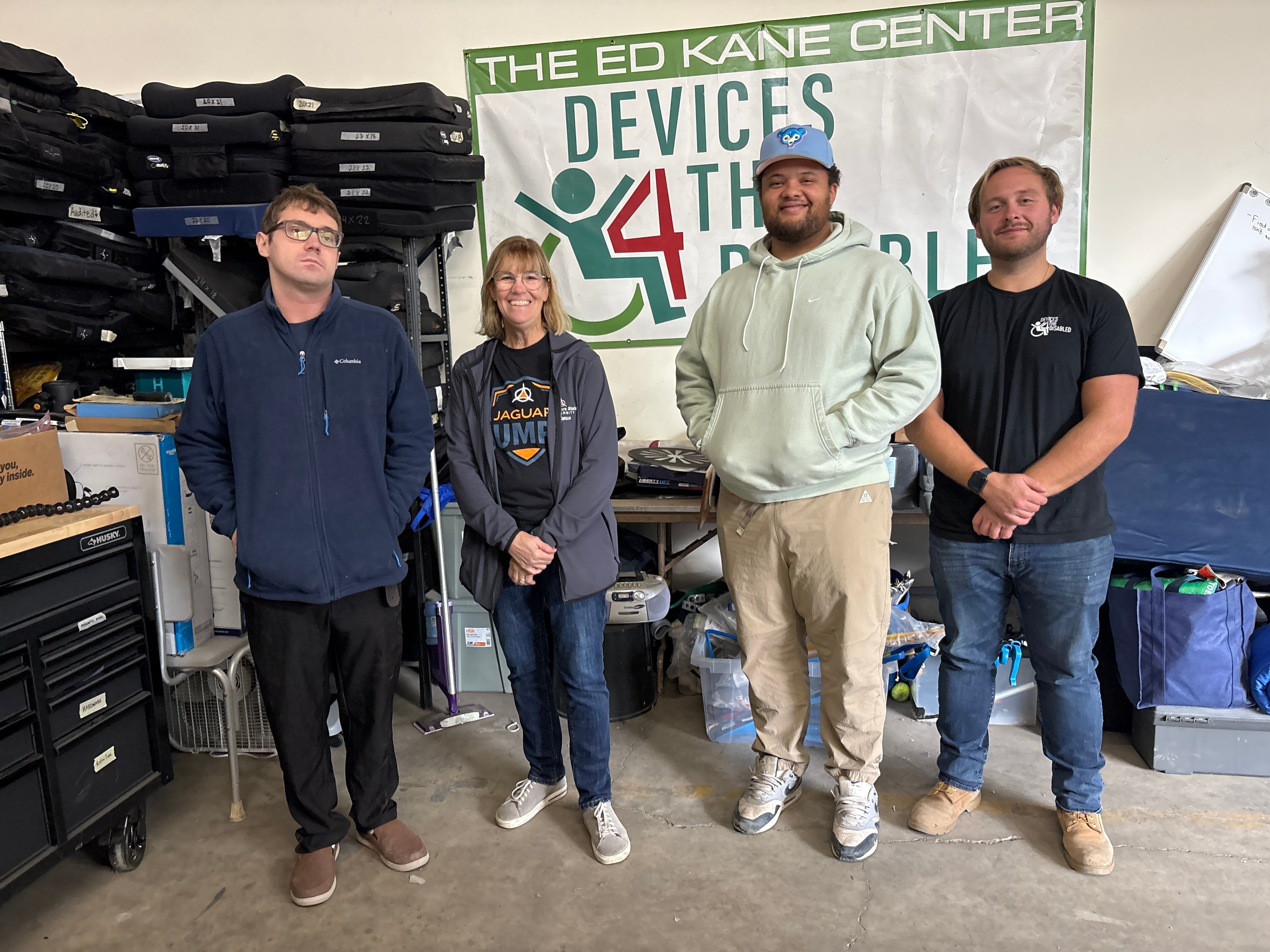 This year, Devices 4 the Disabled expanded its commitment to inclusion through a meaningful partnership with Governors State University’s Jaguar Jumps program. Jaguar Jumps is a bridge program for students with disabilities to transition from high school to college and career pathways. This meaningful partnership supports young adults with intellectual disabilities by preparing them for the workforce—and at D4D, participants gain hands-on experience in a supportive, empowering environment. Dr. Robbie O’Shea, PT, DPT, PhD, Hon. Conductor, our Director of Clinical Services launched the program at GSU and oversees the internship program at D4D.